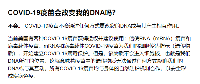 比如,有人相信,打信使RNA(mRNA)疫苗会改变人的DNA。或者打mRNA疫苗会影响胎儿。