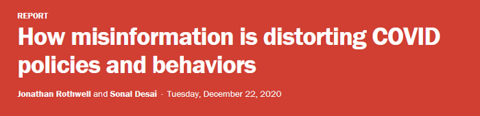 根据一个研究机构Reboot Fundation的总裁Helen Lee Bouyues的说法,共和党人更容易相信关于Covid-19的虚假信息,部分原因是因为保守派围绕病毒讨论的观点。研究还表明,社交媒体重度用户实际上更容易受到Covid迷思的影响。