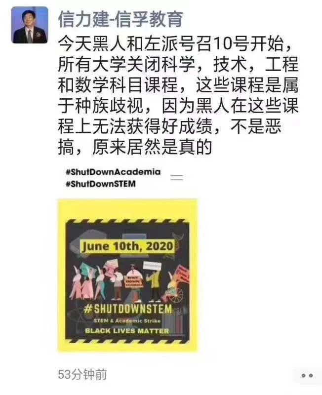 将该数学教学指引歪曲为,说数理化是种族歧视从而要取消的这种叙事,跟去年污名化BLM运动时候的做法如出一辙。去年美国的学术界因为BLM运动,由shutdownstem这个网站发起,呼吁学术界的网站在6月10号这天,关闭网站一天,来反思有没有歧视非裔,类似于行为艺术。当时响应的网站很多,像《自然》,《科学》等知名网站都停业了一天来进行反思。