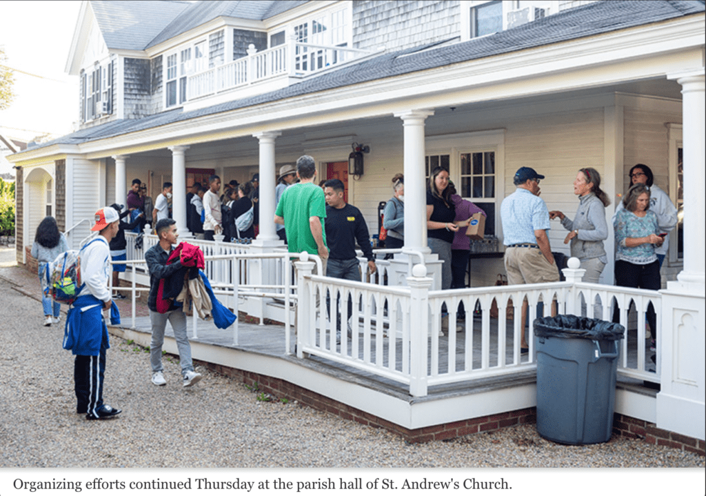 玛莎葡萄园社区服务的首席执行官贝丝·福尔卡雷利(Beth Folcarelli)说:“他们带着装有我们信息的小册子的文件夹前来。我们没有难民服务,我不知道这些事情。我只是因为他们中的一个人给了我他们的文件夹才发现的。想象一下,你被丢在这里,谁也不认识。一个人也不认识!这是令人心碎的。”