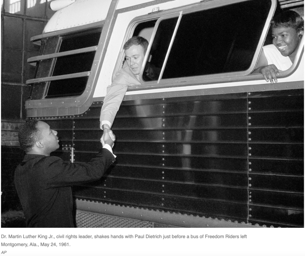 当年带头进行“逆向自由骑行”的一名阿肯色州的律师阿米斯·古特里奇(Amis Guthridge)说,“如果需要两周、两个月、两年、五年或十年,我们将继续下去......”直到肯尼迪这样的白人厌倦了黑人,承认他们只是为了获得黑人的选票。