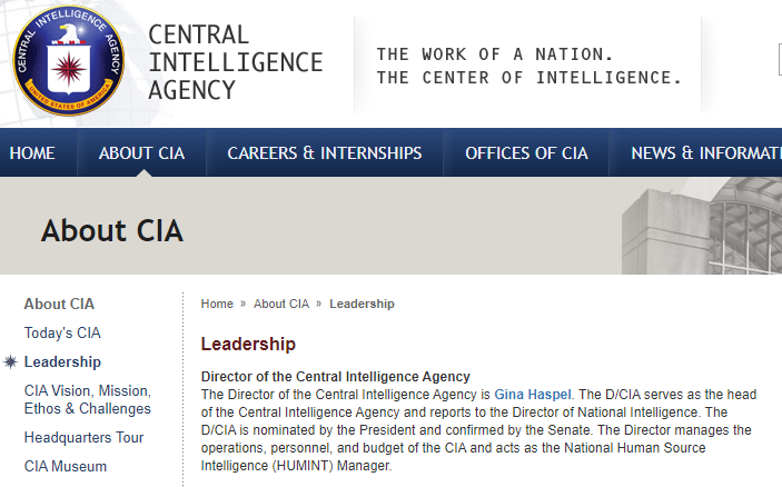 其实只要去查看一下CIA的网站,就能发现Gina Haspel依然是CIA的主任。