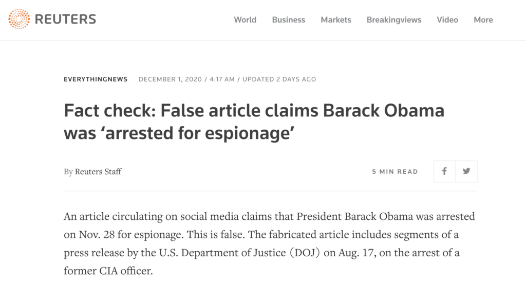 鉴于这则谣言,技术含量太低,很容易识破,很多主流媒体网站如snopes和路透社都马上把它标记为假新闻。