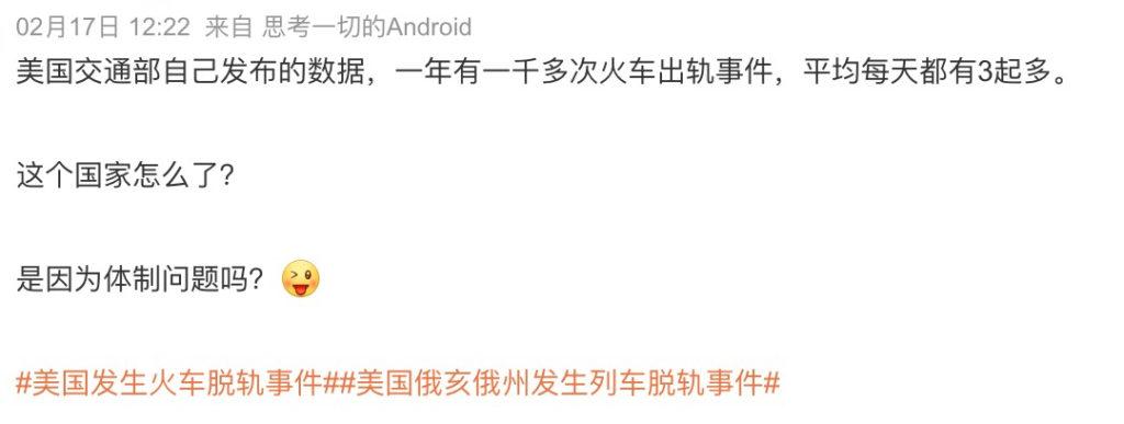 一些中文自媒体指出,美国的火车出轨次数过于频繁,这似乎进一步证明火车并不适合运送危化品。