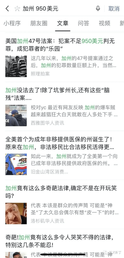 随着大选临近,最近华人微信圈里又开始传各式各样关于加州 47 号法案的文章,不少文章都说这一法案通过后,让加州盗抢 950 美元以下都不算犯罪了,让加州犯罪率飙升,罪犯无法无天等等。在微信圈子里随便一搜就是大量类似的文章。