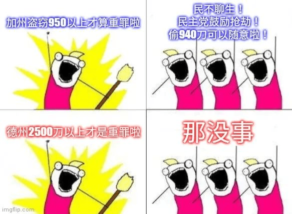 【指向性】解决这些问题的指向性也很明确,那就是投共和党投特朗普。街头偷窃警察接到报案不管怎么办?谴责警察?改革警务问责机制?Defund the police?不,当然是投特朗普投共和党。他们知道加州 40 多年前还是深红州的时候,犯罪率是啥样吗?不知道。