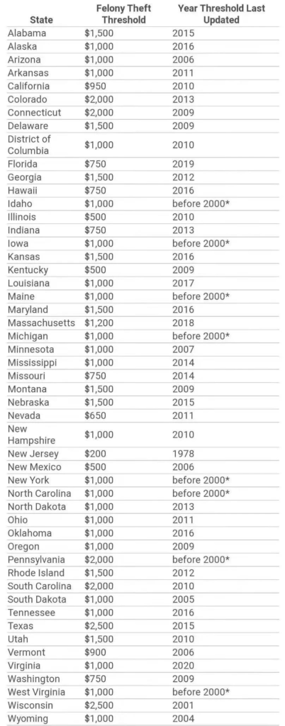 加州其实和路易斯安娜类似,是个刑罚非常重的州。当华人圈里在骂加州 Prop 47 及 950 美元重罪线是 “脑残法案” 的时候,他们意识不到加州这个值已经偏低了。