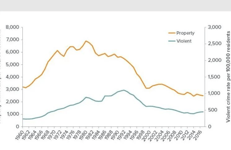 最后谈 Prop 47 到底对加州的犯罪率有没有影响。目前相关研究很多,结论也并不统一。这很正常,对一个影响广泛的社会政策来说,6 年是一个太短的时间段,可供观察的数据不足。且犯罪率变化的因素过于复杂。媒体也处于一惊一诧反复打脸被打脸的过程中。贴一系列图表吧。
