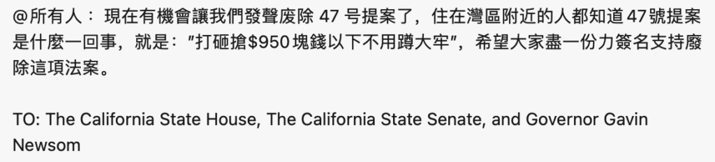 已经是2023年8月了,难以置信的是,从2014年开始就间歇性重复出现的“经典”谣言又又又来了。不少华人在朋友圈和微信群盛传号召联名上书州府,再次要求废除加州47号提案的内容。