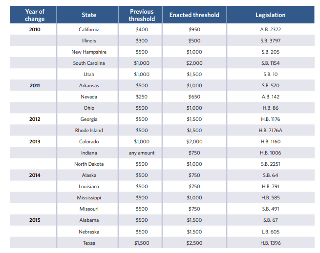 作者断桥在前文谈到过,首先,这种说法是捏造的,正确的是“偷窃少于950美元不算重罪”;其次,47号提案虽然包含“950美金界定重罪线”这一条款,但该条款却并非47号提案所发明的。最早出自2010年加州议会通过的AB2372法案。