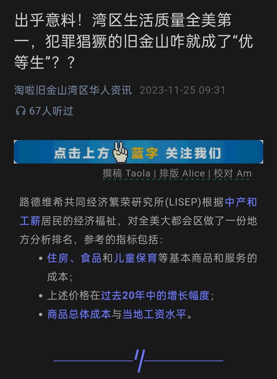 包括很多公众号在内的右翼媒体都喜欢黑加州,特别是旧金山湾区,把旧金山描绘得脏乱不堪,到处都是游民和瘾君子,“零元购”横行,仿佛人间地狱,从而指责这些都是“左派政策酿成的恶果”。这就导致人们先入为主,但凡发生类似鲍伯·李这样的惨剧,或者有大型连锁店关闭在湾区的门店,就会立刻认为是这里犯罪率高企导致的后果。也是因为这种片面描述,当一项研究称旧金山湾区的生活质量仍居全美最高时,公众号报道下方的评论是一片“数据造假”的指责。