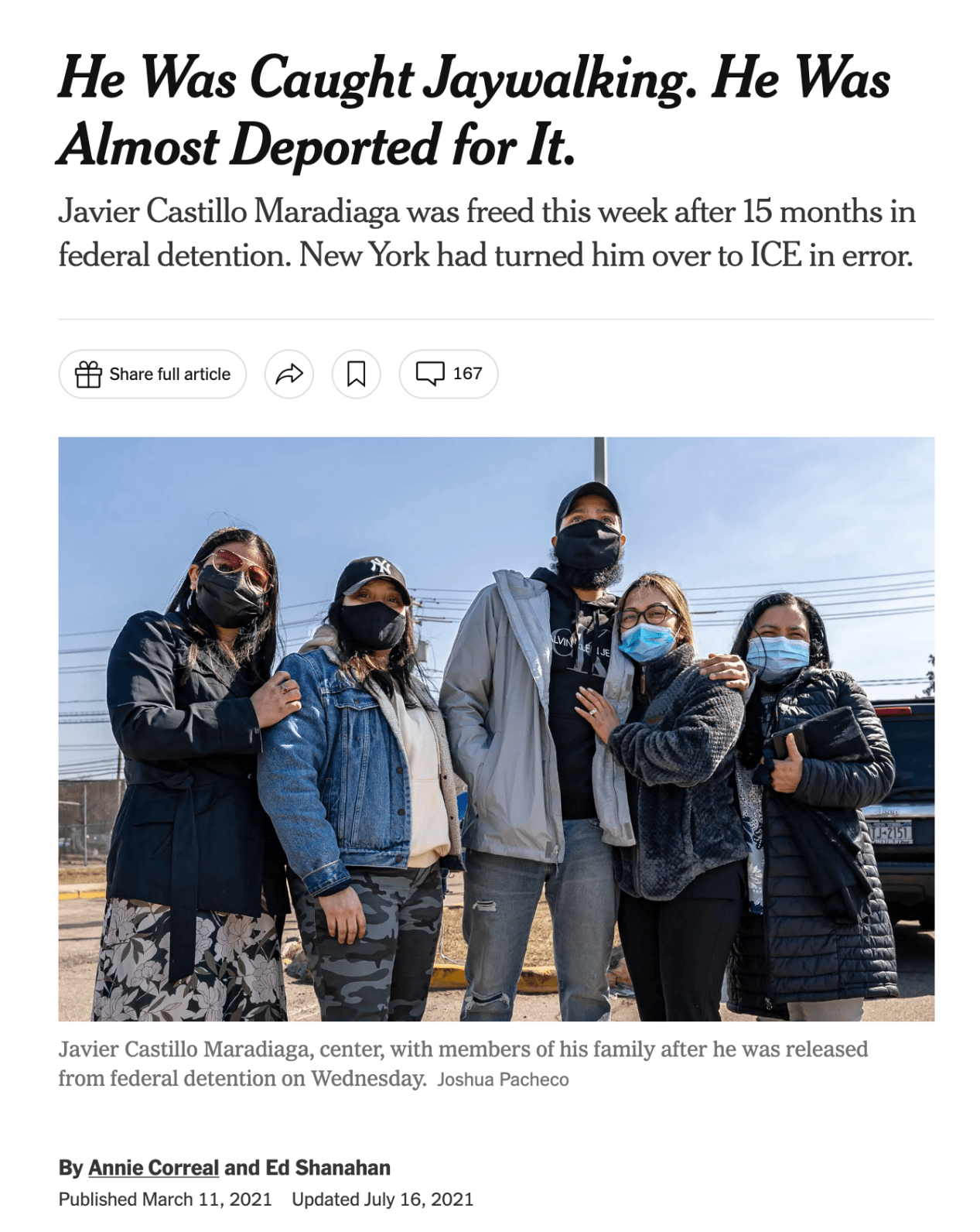 我们来看一个常见的案例:有人在公路上超速或者尾灯坏了,被警察拦下。如果是无证移民,他们很可能没有有效的驾驶执照——美国只有12个州和哥伦比亚特区允许这类移民合法驾车。除了这种情况,报警(例如家庭或邻里纠纷)、车祸、未满21岁喝酒等情况,移民也可能进入警方视野,哪怕他们是受害的一方或证人。有个突出的例子,2019年在纽约市,一名男子因为乱穿马路被捕,被错误地移交给了ICE(纽约也是庇护城市,按规定只将严重和暴力罪犯移民给ICE),在此期间被移民局关押了一年多,险些被驱逐出境;这名男子从7岁起来到美国,在美国生活了20年,而且他也算不上是完全无证,而是申请到了“童年抵美者暂缓遣返计划”(DACA)的待遇,但在失效后没有续签。