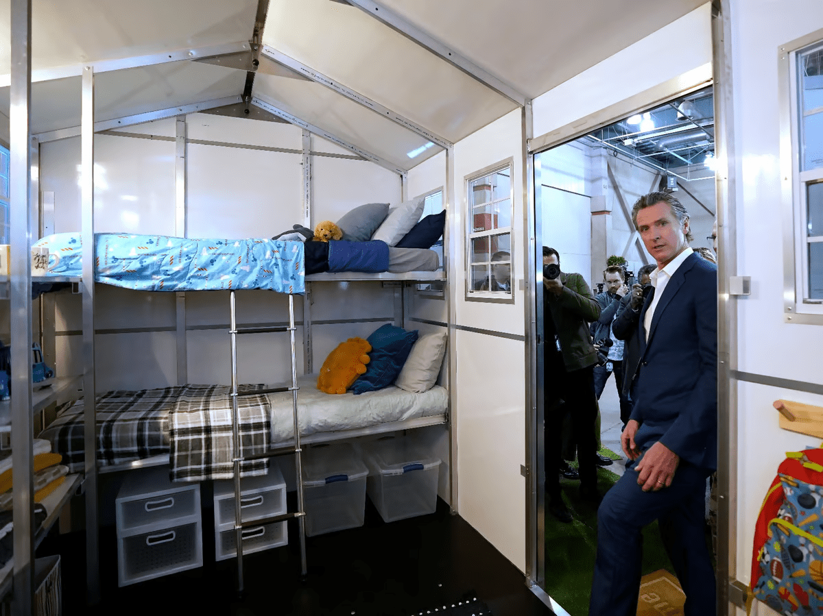 在加州,微型住宅是近两年州政府和各地方政府应对无家可归者问题的一个主要选项。2023年3月,加州州长纽森宣布,将拨款为全州建设1200个微型住房,分布于州府萨克拉门托、圣何塞、圣地亚哥和洛杉矶四个城市。按纽森最初的计划,加州州政府将负责出资,从供应商处购买这些微型住房,还将动用公民警卫队来帮助准备和运输这些房屋,但地方政府则需要负责解决土地问题。