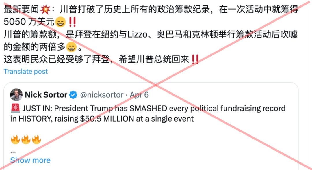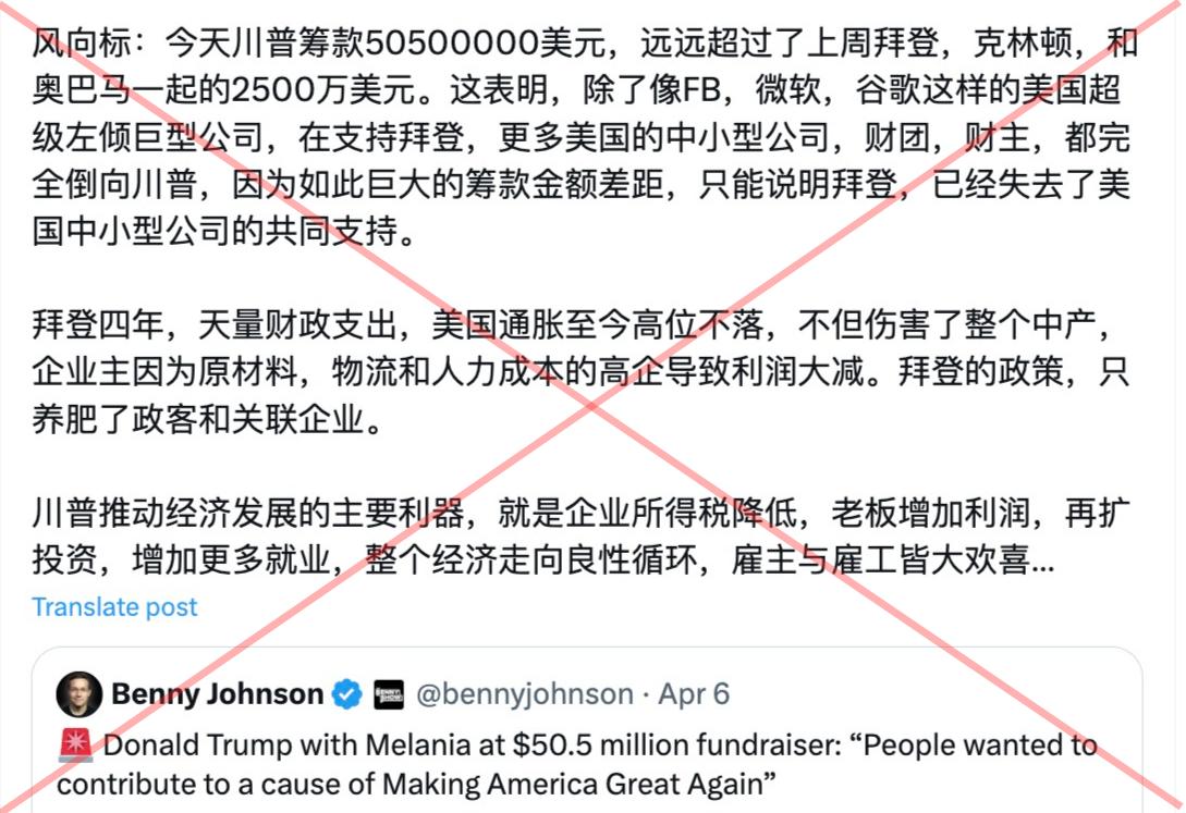 又有推文称,捐款代表了美国中小型公司倒向川普。