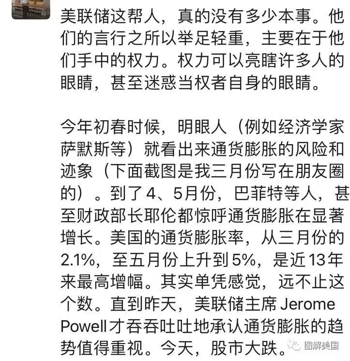 我们转载并编辑了“图解美国”上周发布的文章《通货膨胀——美联储能否降服这匹脱缰的野马?》,作者启明对美国目前的经济状况有比较深刻的洞见。我们希望通过较为清晰的梳理,让读者更了解导致通胀和利率上调的原因,而不是是被以上截图中的阴谋论说法迷惑,将问题简单化。