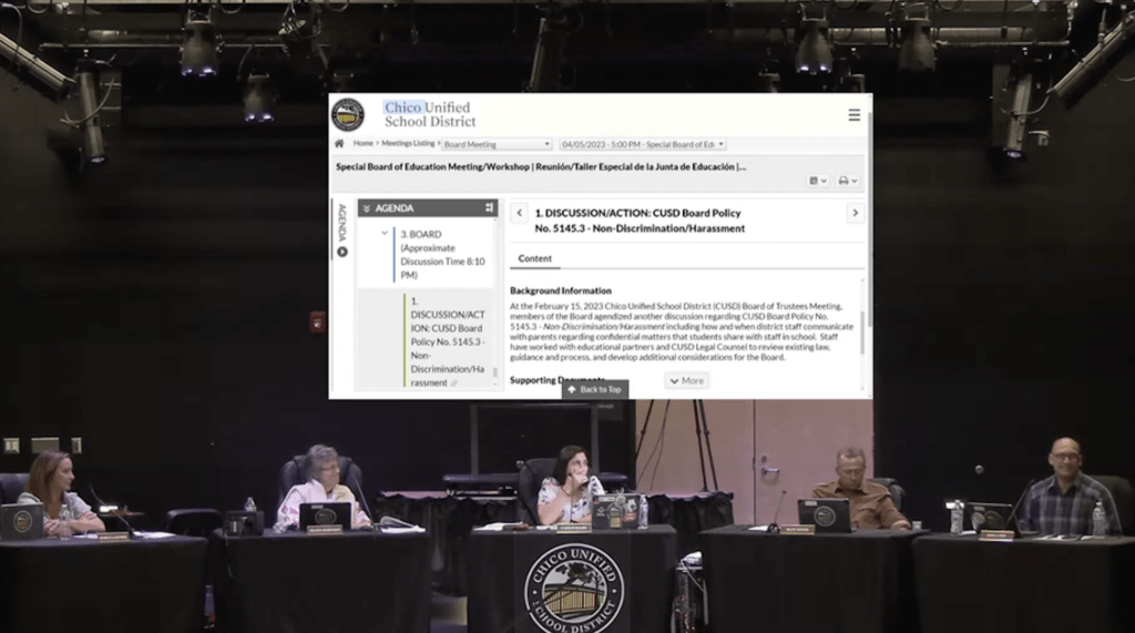 报道中提到奇科市联合校区之所以投票是在美国自由中心 (Center for American Liberty) 代表奥罗拉·雷吉诺 (Aurora Regino) 对该学区提起诉讼后进行的。福克斯新闻报道写道“雷吉诺作为一名母亲,指控学校一名指导顾问在家人不知情的情况下帮助她11岁的女儿转为男性”。