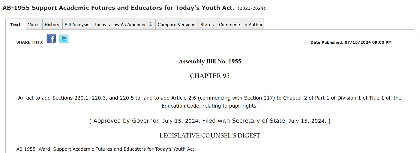 今年年初,加州众议员克里斯·沃德(Chris Ward)提出了AB 1955 — — 支持学术未来和当代青年教育法案,又称“安全法案”。