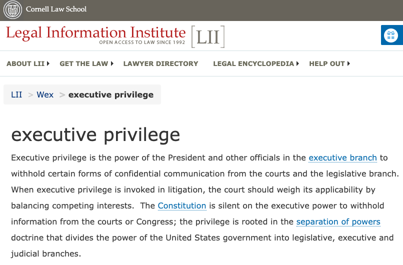 在班农及其律师的辩解论点中,行政特权是其中的一部分。班农称,由于川普总统的行政特权,他无法配合1月6日调查委员会的工作。