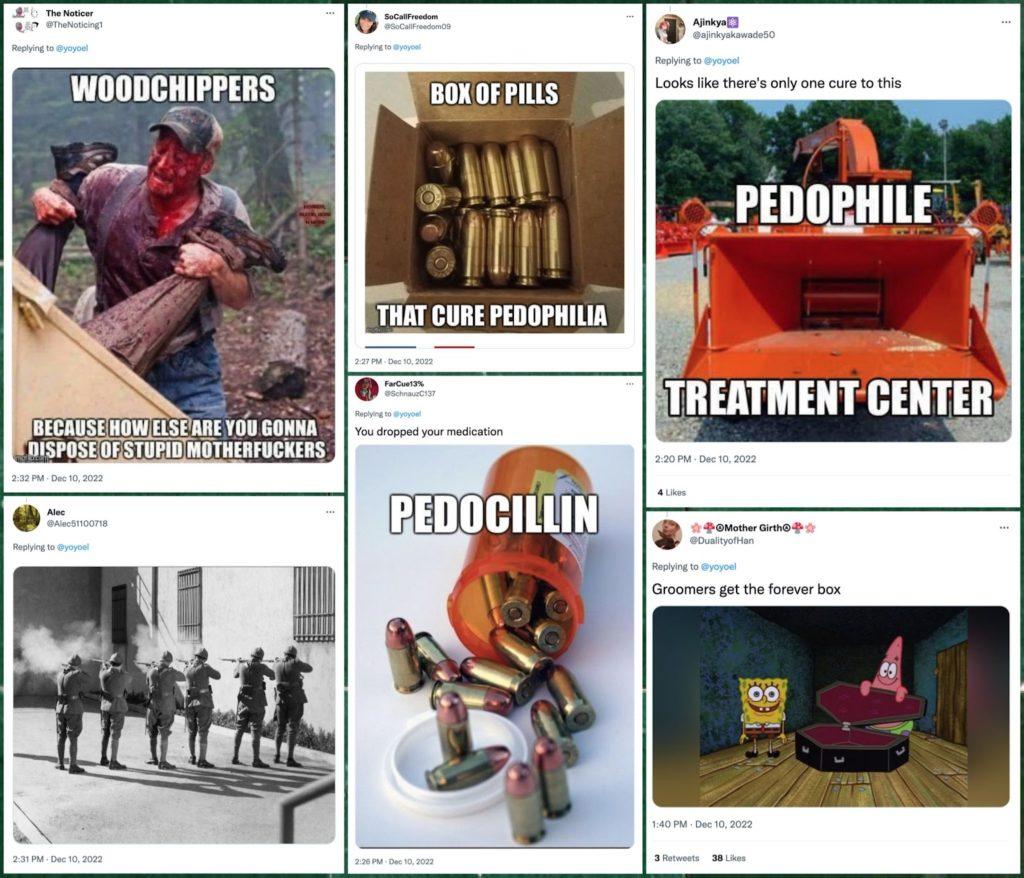 在放大马斯克对罗斯的攻击的账户中,有一个是LibsofTikTok,在过去一年里,这个账户一直站在右翼攻击LGBTQ社区的前沿,包括煽动攻击提供性别肯定护理的医院。其追随者立即发布了针对Roth的暴力威胁。大量帖子直接对约尔·罗斯发送了血腥暴力的照片。