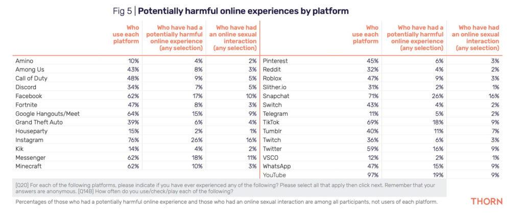 但专家们更频繁地指出,其他平台同样是儿童性侵受害者的狩猎场。演员阿什顿·库彻(Ashton Kutcher)和黛米·摩尔(Demi Moore)为打击儿童性侵而成立的非营利组织Thorn去年发布的一份报告称,其调查的未成年人在Snapchat、Instagram、YouTube、TikTok和Messenger上报告的各种“潜在有害的在线体验”比在推特上更多。
