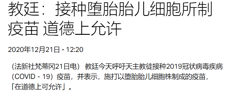任何依据这些在历史上使用过的细胞系而制成的疫苗,都不会要求或请求孕妇重新进行一次堕胎。