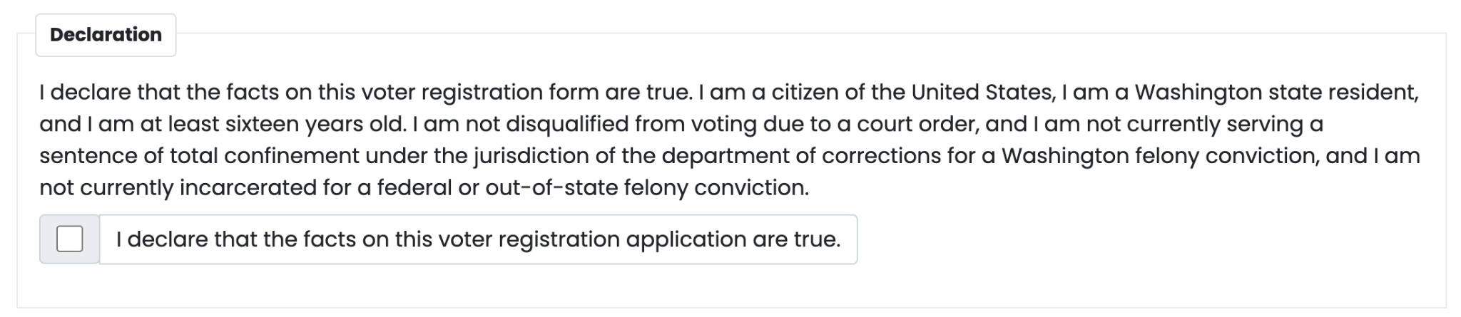 上图是华盛顿州选民注册流程中的宣誓环节,如果勾选了此项,而你并不是美国公民,那根据该州的相关法律,你就已经可以被以C级重罪起诉了。