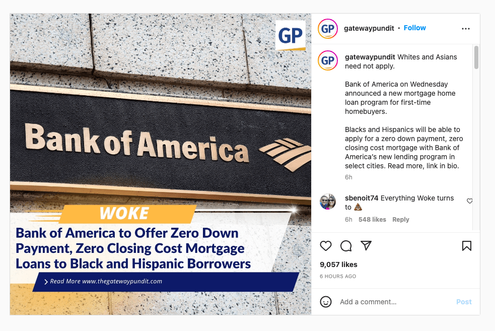 这篇报道中强调“白人和亚裔无需申请,只有黑人和西班牙裔才有资格”。Gateway Pundit随后在Instagram分享了同一信息。